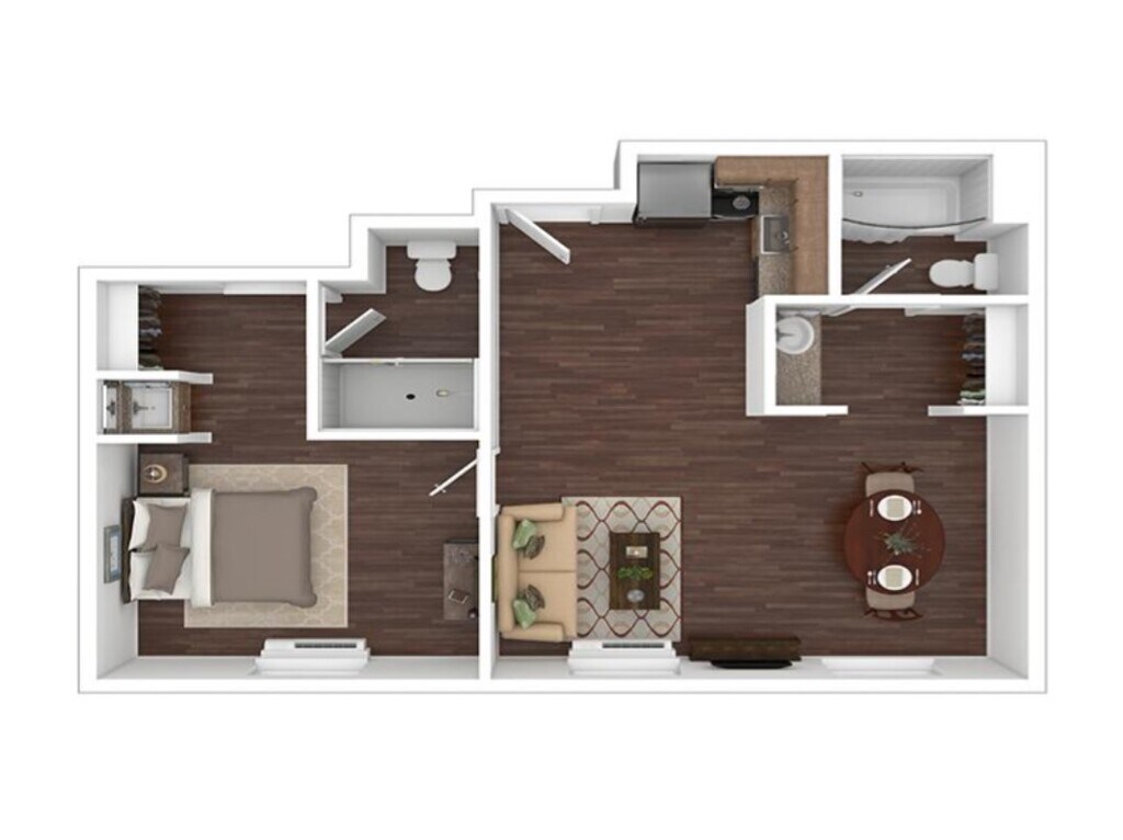 Modelo de apartamento: QuartziteLlame para Precios1 Dormitorio, 1 Baño, 530 sq ftNo Disponible![]()