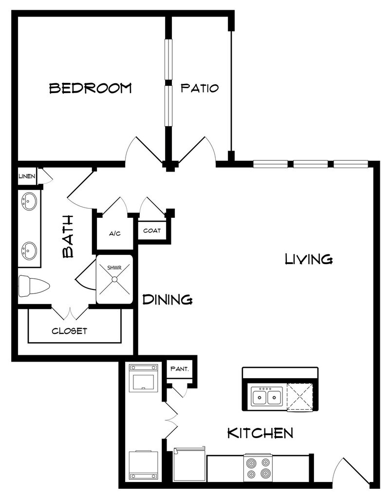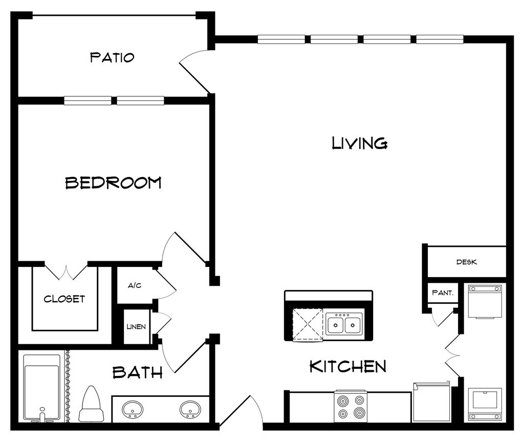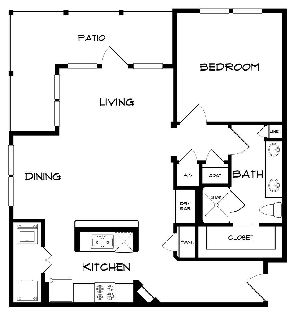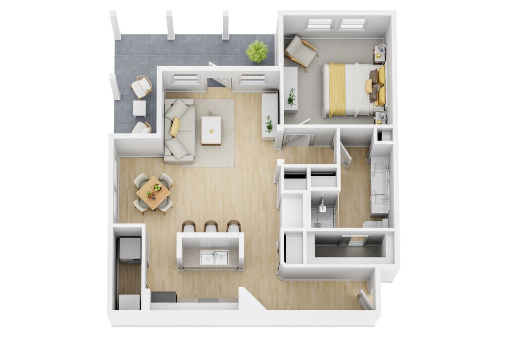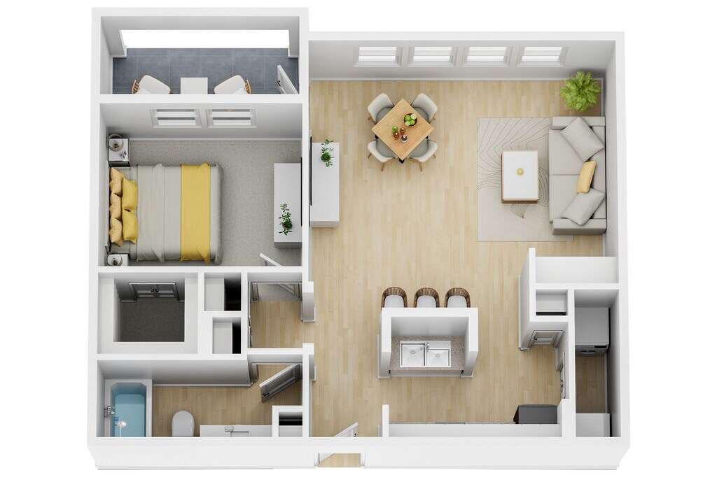 Modelo de apartamento: E1Desde $1,405Estudio, 1 Baño, 541 sq ftDisponible Ahora![]()