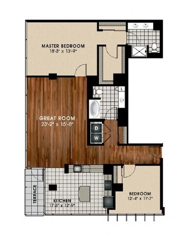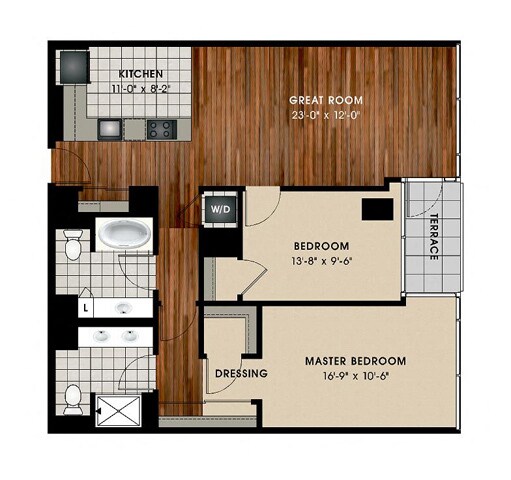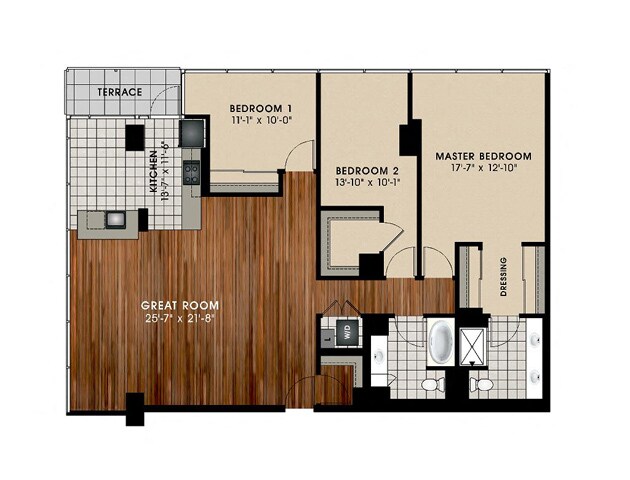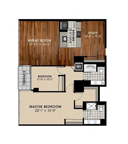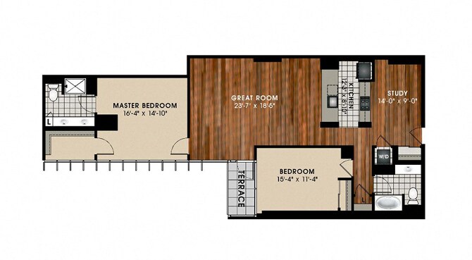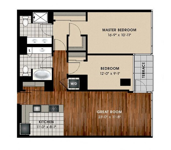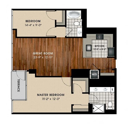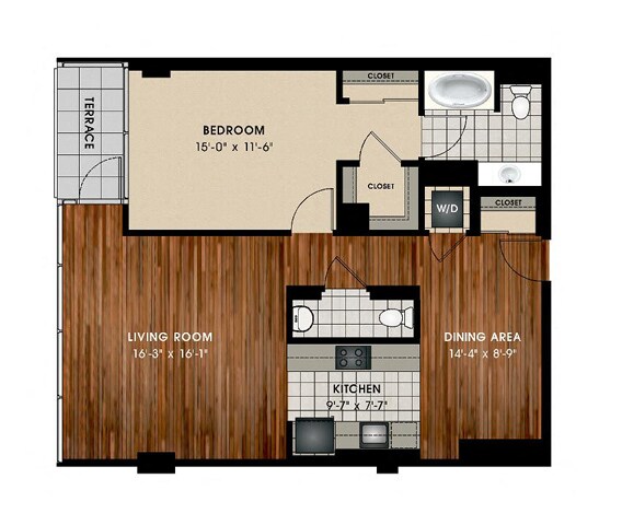 1 Dormitorio, 1.5 Baños, 957 pies²Disponible AhoraGalería del Modelo