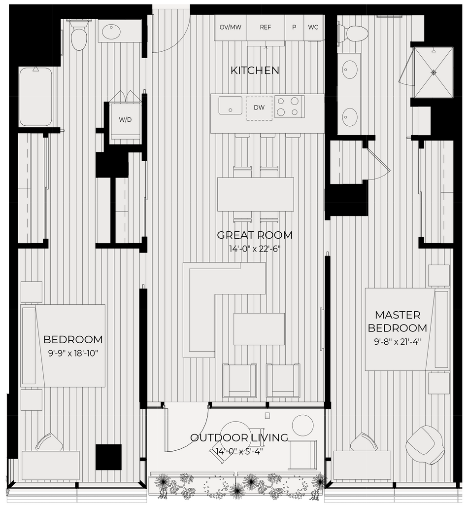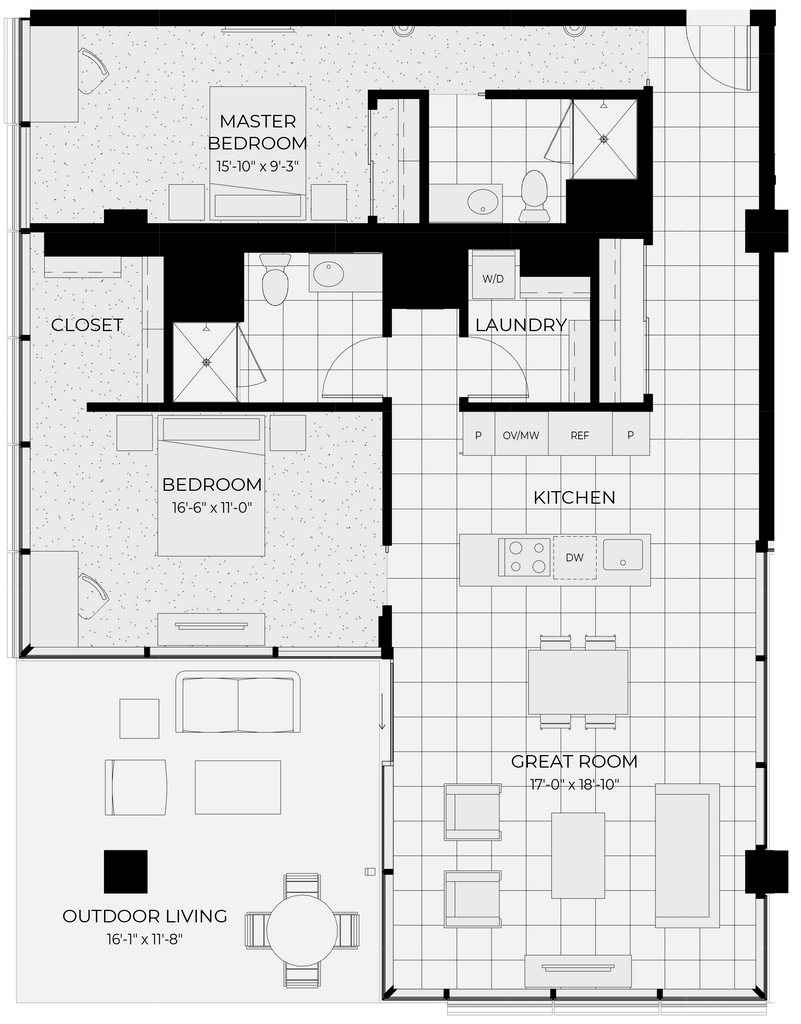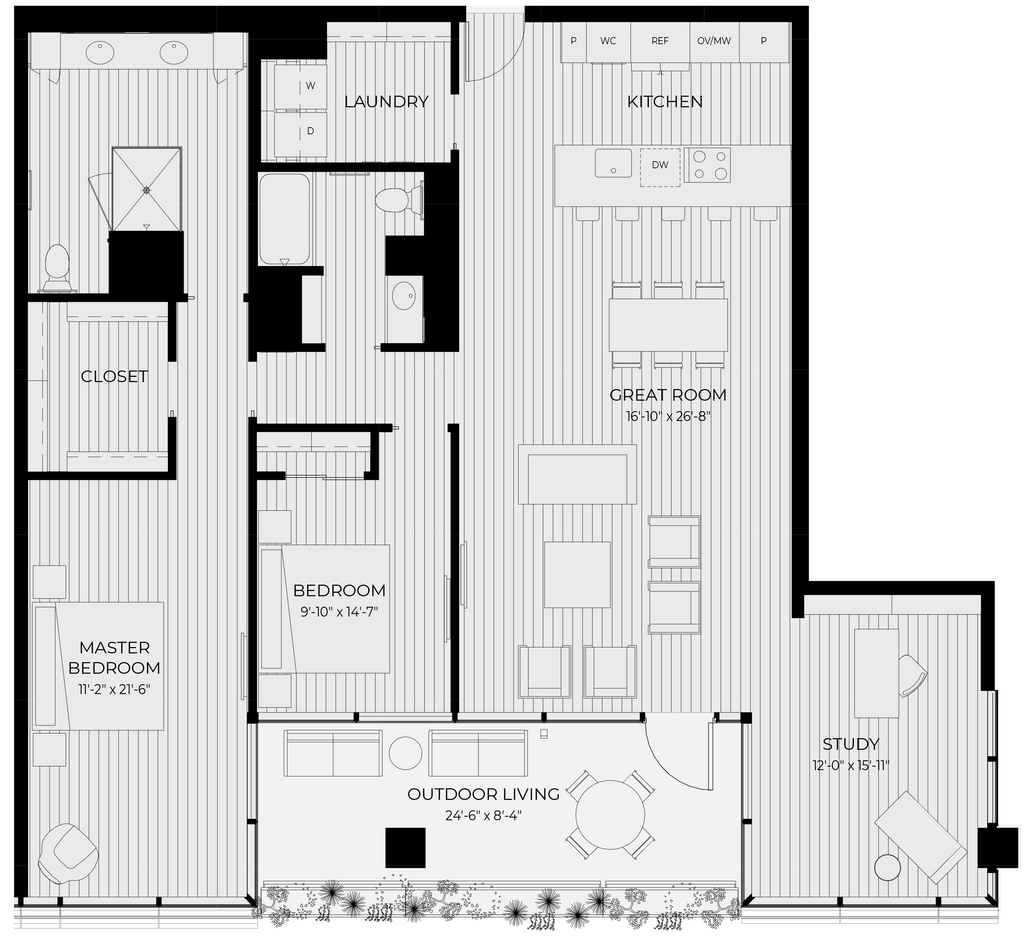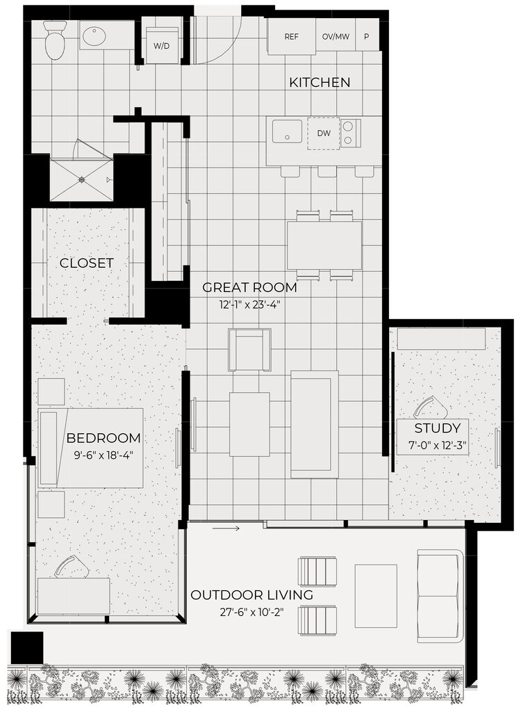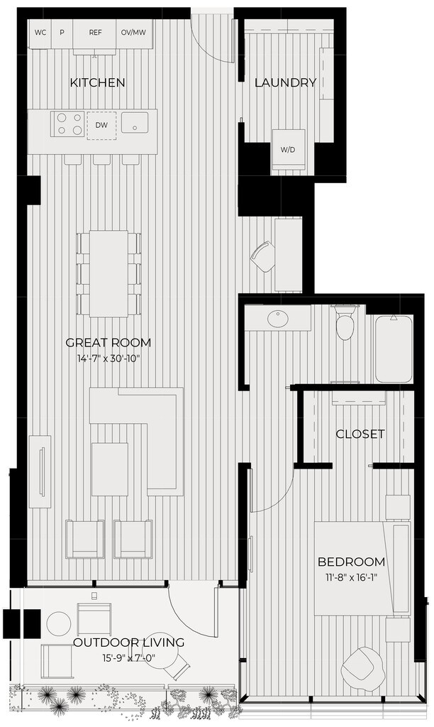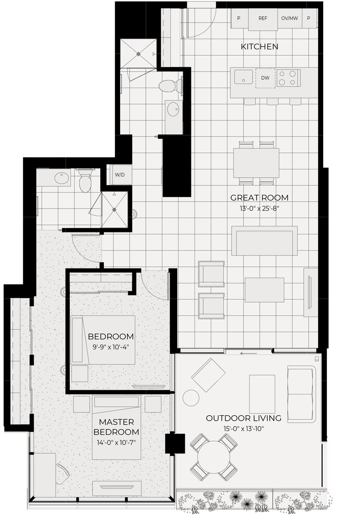 1 Dormitorio, 1 Baño, 805-892 pies²Disponible AhoraGalería del Modelo
