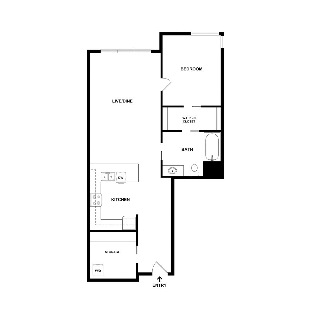 Modelo de apartamento: 1x1 E$2,3951 Dormitorio, 1 Baño, 729-799 sq ftDisponible March 13, 2026![]()
