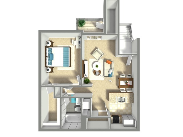 1 Dormitorio, 1 Baño, 800 pies²Disponible AhoraGalería del Modelo