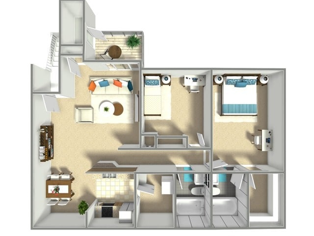 Modelo de apartamento: Harvest Haven (Furnished)Llame para Precios2 Dormitorios, 1 Baño, 1180 sq ftNo DisponibleHarvest Haven (Furnished) - Plano 1 Haven