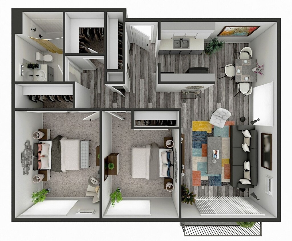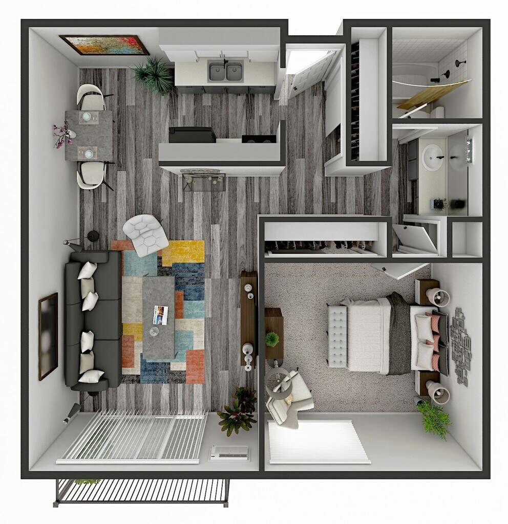 1 Dormitorio, 1 Baño, 750 pies²Disponible AhoraGalería del Modelo