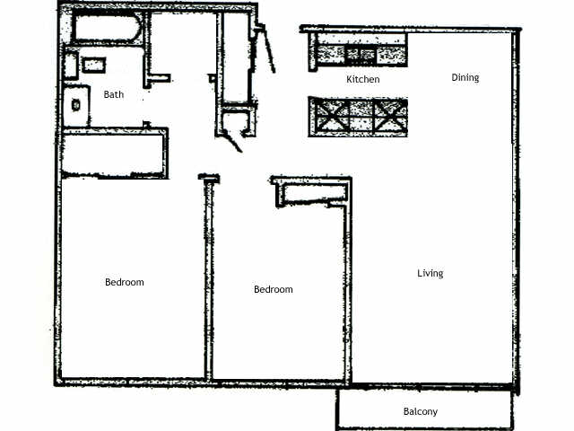 2 Dormitorios, 1 Baño, 950 pies²Disponible AhoraGalería del Modelo