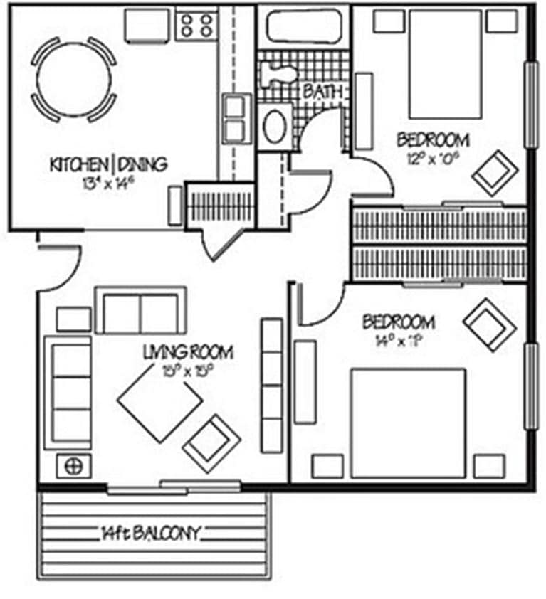 2 Dormitorios, 1 Baño, 841-897 pies²Disponible AhoraGalería del Modelo