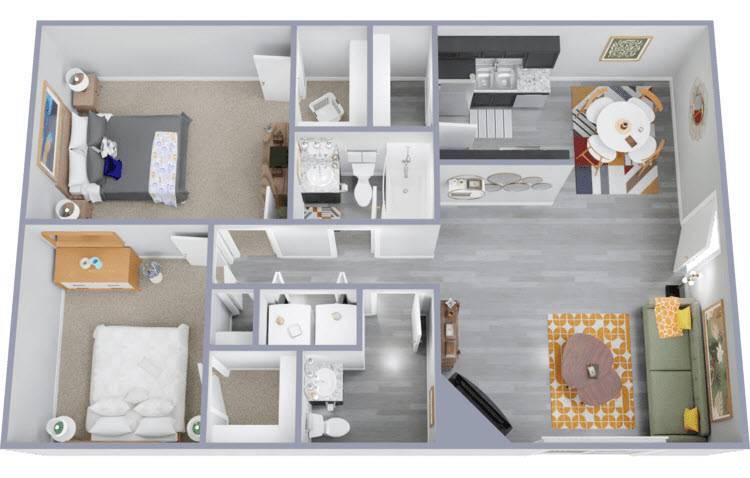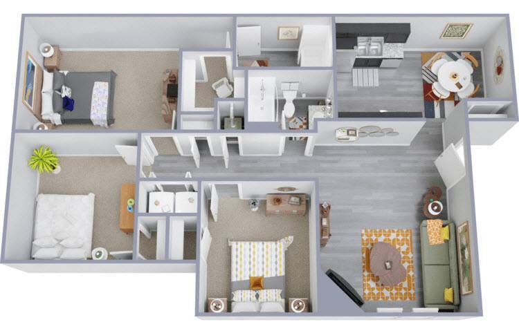 3 Dormitorios, 2 Baños, 1088 pies²Galería del Modelo