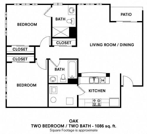 1 Dormitorio, 1 Baño, 905 pies²El más grandeEsta opción tiene las unidades más grandes para este modeloGalería del Modelo