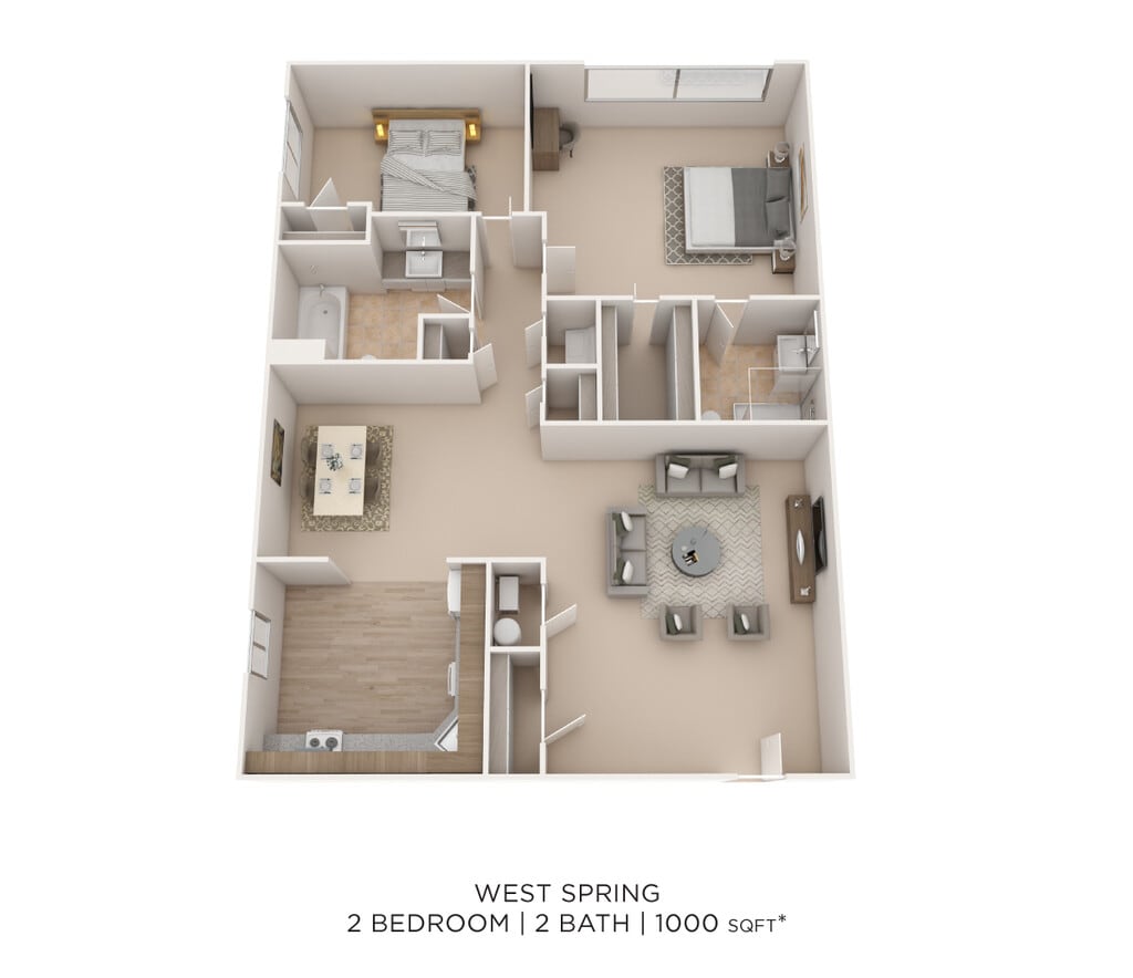 2 Dormitorios, 2 Baños, 1000 pies²Disponible AhoraEl más baratoEsta opción tiene los precios más bajos para este modeloGalería del Modelo