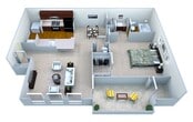1 Dormitorio, 1 Baño, 630 pies²Disponible AhoraGalería del Modelo