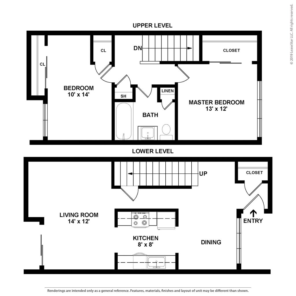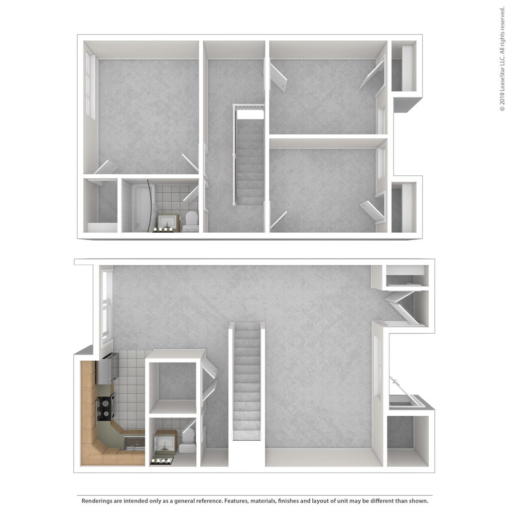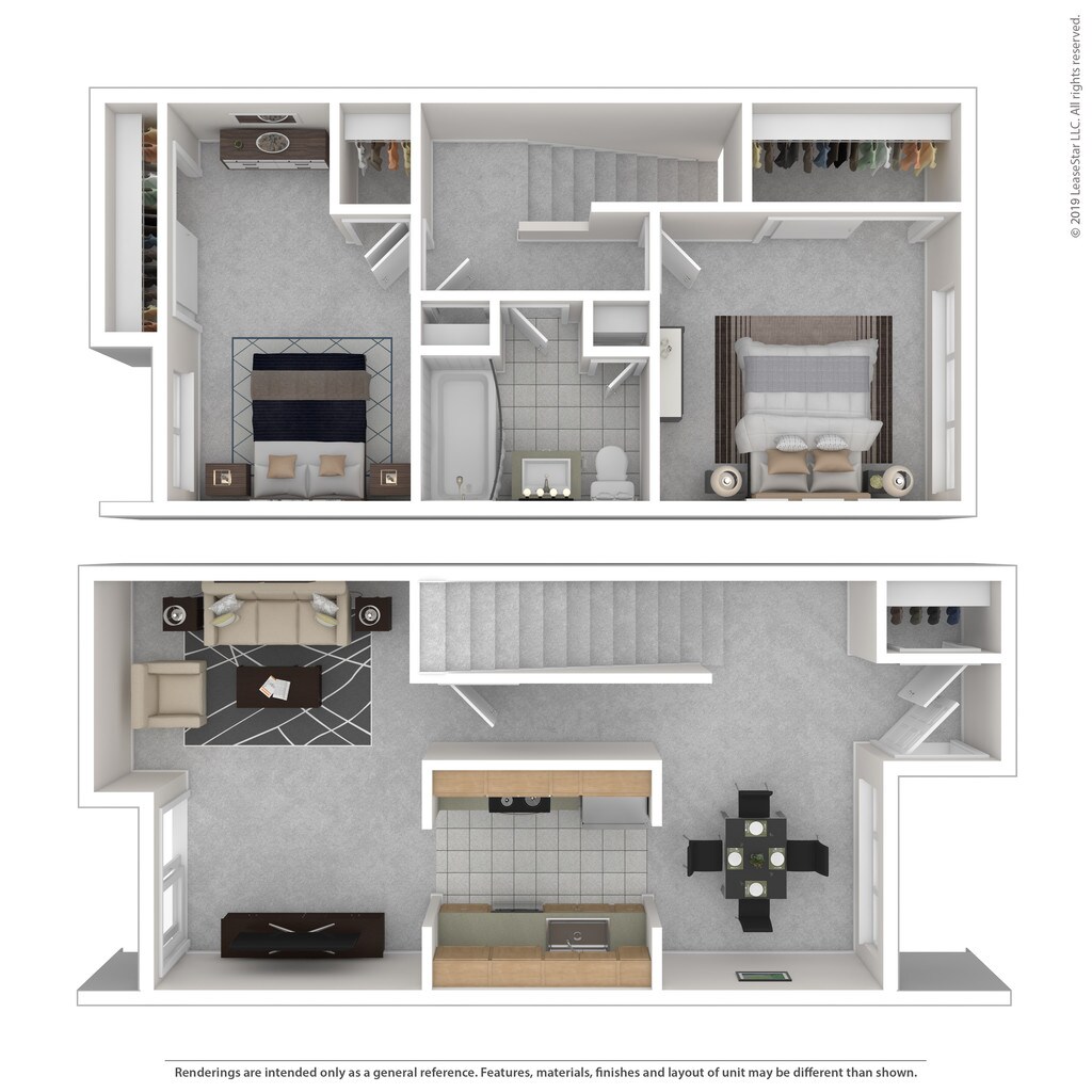 Modelo de apartamento: 2 Bed / 1 Bath TownhomeLlame para Precios2 Dormitorios, 1 Baño, 889 sq ftNo Disponible![]()