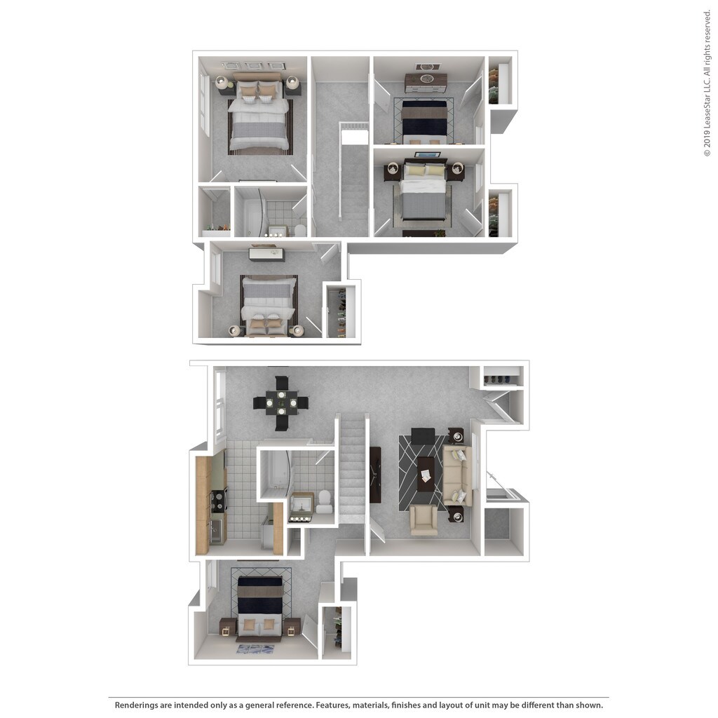 3 Bed / 1.5 Bath Townhome - Plano 13 4 Dormitorios