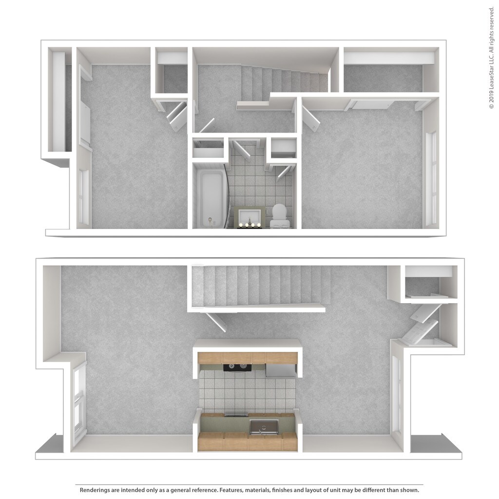 2 Bed / 1 Bath Townhome - Plano 2 ![]()