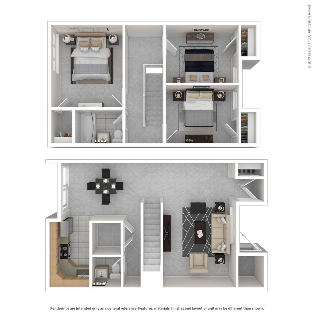 2 Bed / 1 Bath Townhome - Plano 3 3 Dormitorios