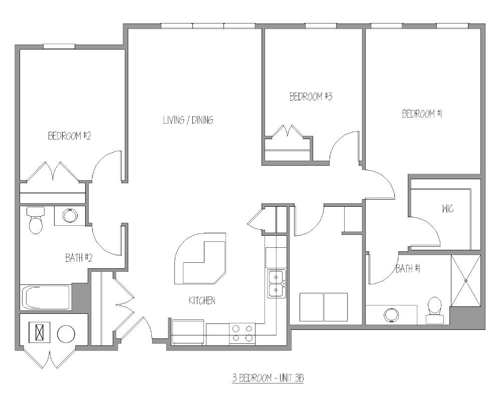 Modelo de apartamento: 3 BEDROOM - 3B$2,1993 Dormitorios, 2 Baños, 1291 sq ftDisponible Ahora3 BEDROOM - 3B - Plano 1