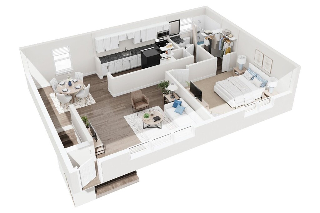1 Dormitorio, 1 Baño, 730 pies²Disponible AhoraGalería del Modelo