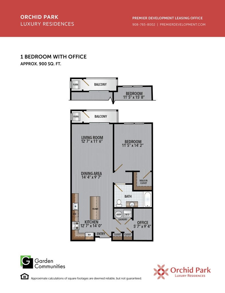 $3.12/sq.ft. - One Bedroom with Office - Plano 1 2 Dormitorios