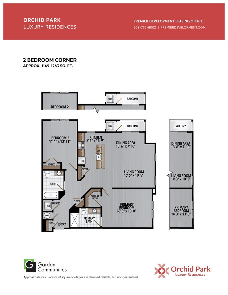 Ver Planos No Disponibles$3.50/sq.ft. - One Bedroom Corner