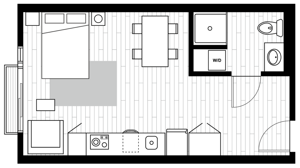 Estudio, 1 Baño, 376-393 pies²Disponible AhoraGalería del Modelo