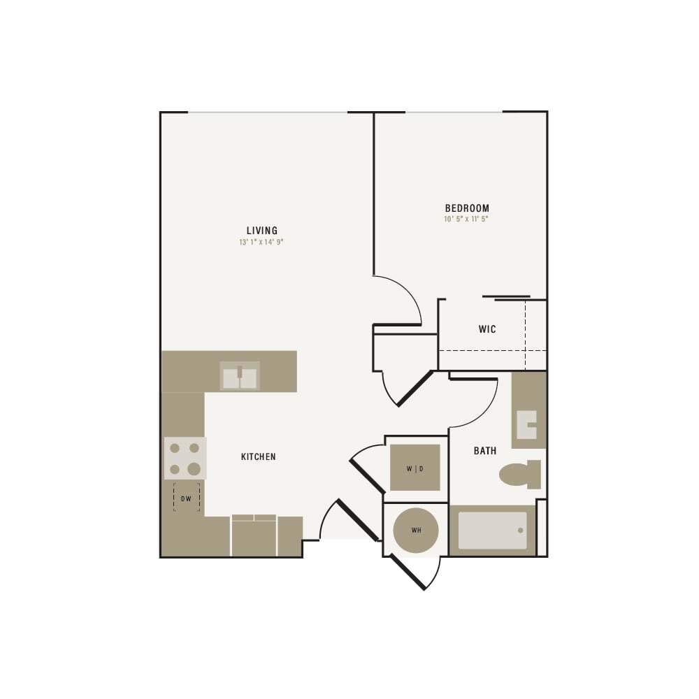 1 Dormitorio, 1 Baño, 615-642 pies²Disponible AhoraGalería del Modelo