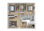 Modelo de apartamento: Three Bedroom, Two Bathroom$1,6993 Dormitorios, 2 Baños, 1100 sq ftNo Disponible![]()