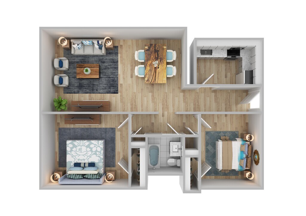 Modelo de apartamento: Two Bedroom, One Bathroom$1,3992 Dormitorios, 1 Baño, 900 sq ftDisponible Ahora![]()
