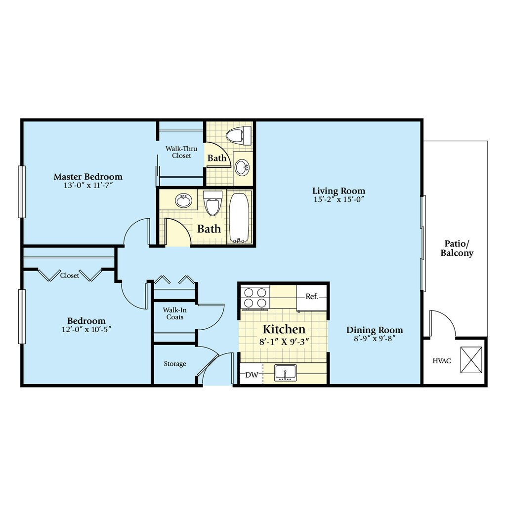 2 Dormitorios, 1.5 Baños, 1160 pies²Disponible AhoraGalería del Modelo