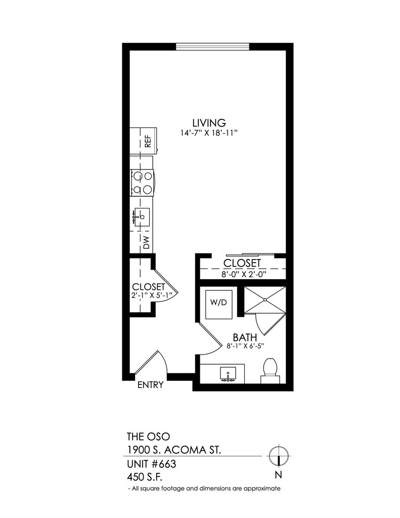 Studio - Plano 2 Los planos son representaciones artísticas. Todas las dimensiones son aproximadas. El producto y las especificaciones reales pueden variar en tamaño o detalle. No todas las características están disponibles en cada vivienda en alquiler. Por favor, consulta con un representante para obtener más detalles.
