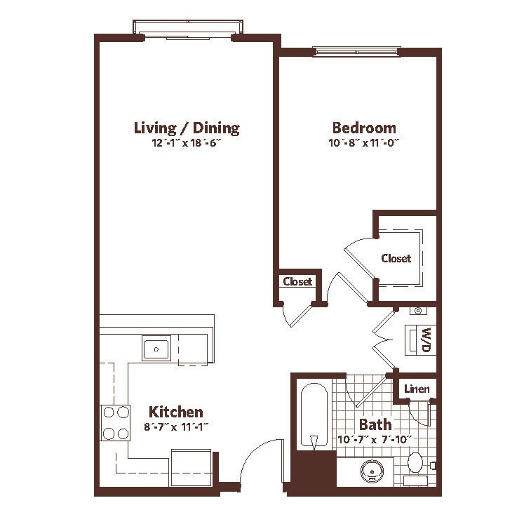 Estudio, 1 Baño, 605 pies²Galería del Modelo