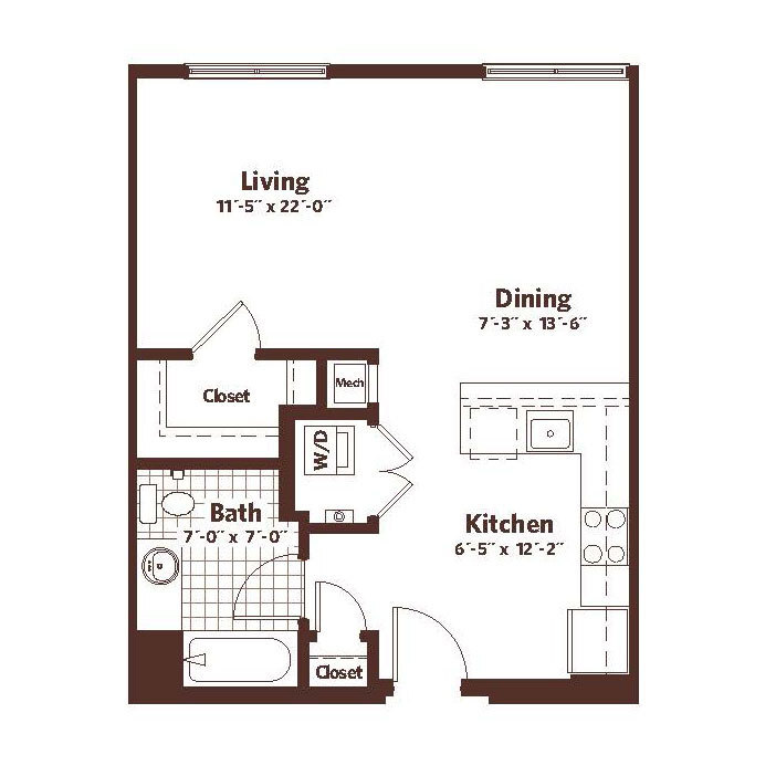 Modelo de apartamento: E-S2Llame para PreciosEstudio, 1 Baño, 613 sq ftNo DisponibleLos planos de la planta son una interpretación artística. Todas las dimensiones son aproximadas. Los tamaños o el detalle del producto real y sus especificaciones pueden variar. No todas las características están disponibles en todos los hogares para rentar. Los precios y la disponibilidad están sujetos a cambios. El alquiler que se muestra es mensual. Se pueden aplicar ciertos cargos, por ejemplo, entrega de paquetes, recolección de basura, agua, servicios, etc. Depositos varian. Consulta a un representante para conocer detalles.
