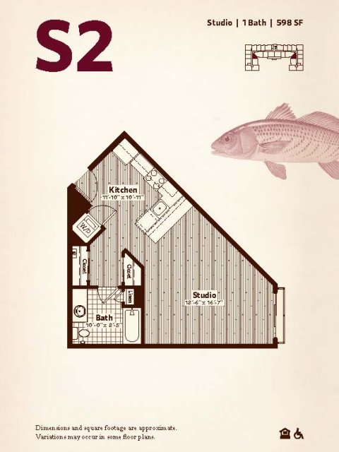 Modelo de apartamento: S2Llame para PreciosEstudio, 1 Baño, 591-598 sq ftNo DisponibleLos planos de la planta son una interpretación artística. Todas las dimensiones son aproximadas. Los tamaños o el detalle del producto real y sus especificaciones pueden variar. No todas las características están disponibles en todos los hogares para rentar. Los precios y la disponibilidad están sujetos a cambios. El alquiler que se muestra es mensual. Se pueden aplicar ciertos cargos, por ejemplo, entrega de paquetes, recolección de basura, agua, servicios, etc. Depositos varian. Consulta a un representante para conocer detalles.
