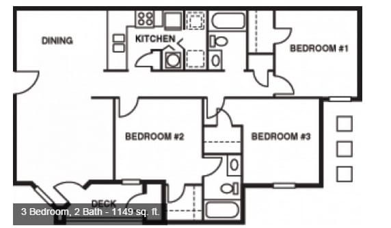 3 Dormitorios, 2 Baños, 1149 pies²Disponible AhoraDetalles de Diponibilidad