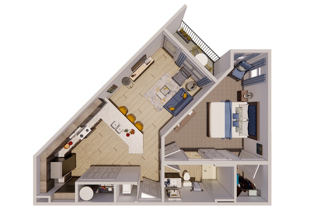 1 Dormitorio, 1 Baño, 735 pies²Disponible AhoraGalería del Modelo