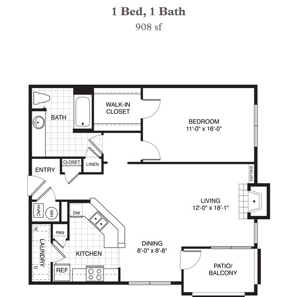 Garden 908 SF - Plano 1 Unidad de apartamento: 0428Modelo de apartamento: Garden 908 SF$2,3461 Dormitorio, 1 Baño, 908 sq ftDisponible AhoraLoft 708 SF