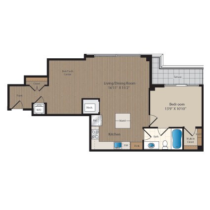 1 Dormitorio, 1 Baño, 845 pies²Disponible AhoraGalería del Modelo