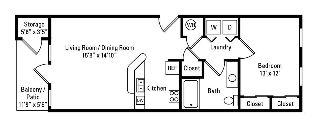1 Bedroom, 1 Bath 692 sq. ft. - Addison