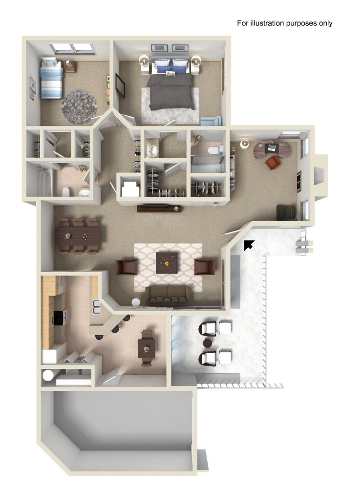 Modelo de apartamento: C-UPPER$1,9002 Dormitorios, 2 Baños, 1315 sq ftNo Disponible![]()