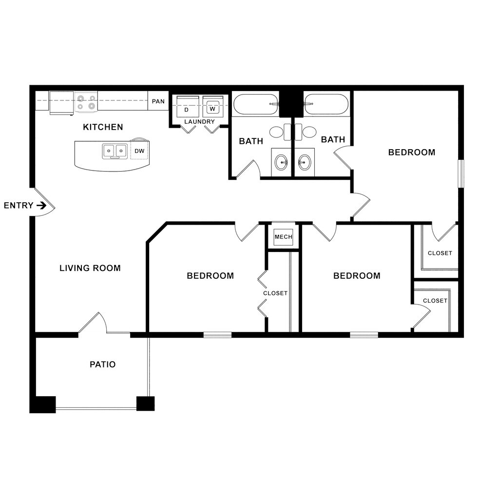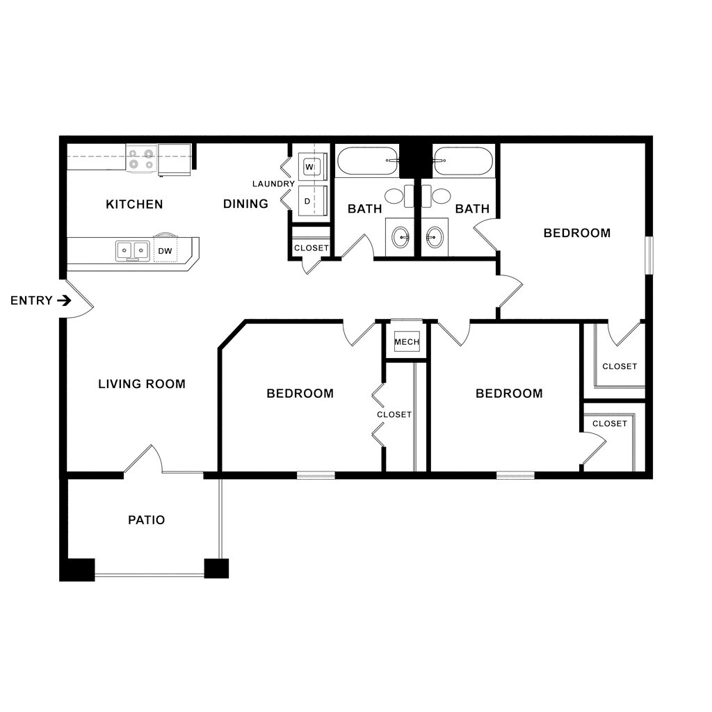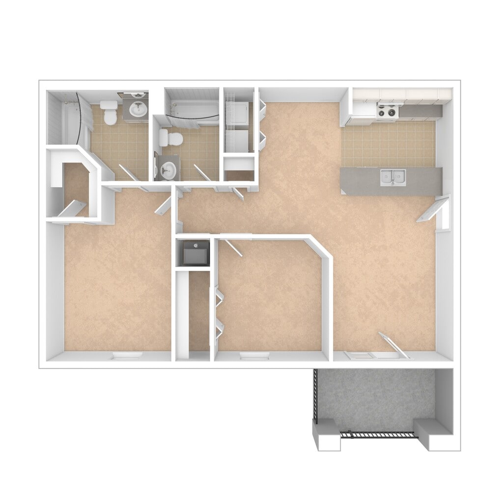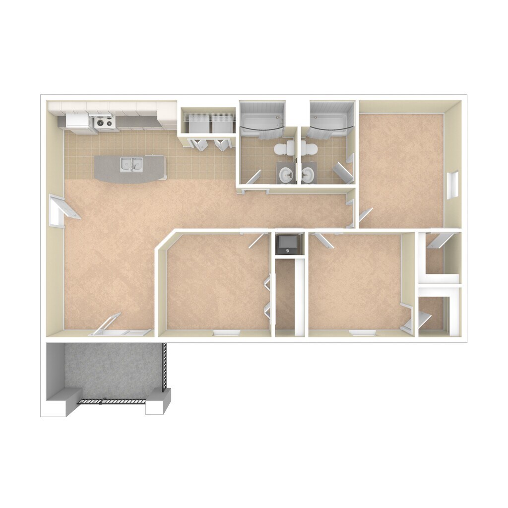 The Grotto - Plano 3 Unidad de apartamento: 1014Modelo de apartamento: The Grotto$1,4211 Dormitorio, 1 Baño, 716 sq ftDisponible Ahora2 Dormitorios