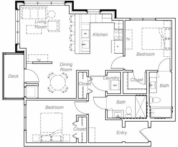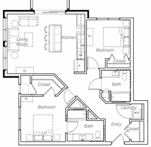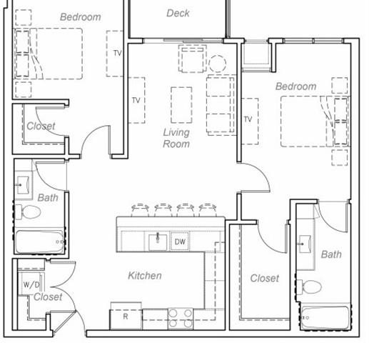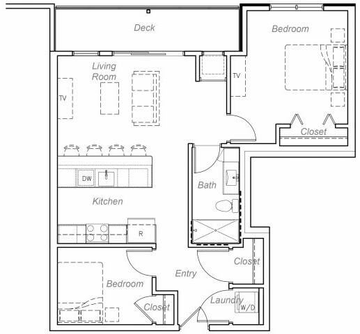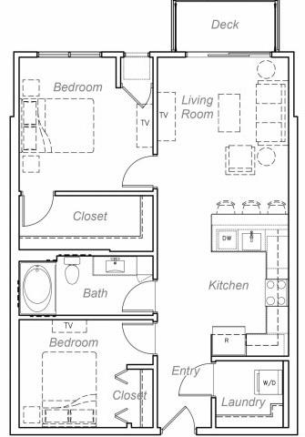 Barton-H - Plano 1 Unidad de apartamento: 407Modelo de apartamento: Barton-H2 Dormitorios, 2 Baños, 1060 sq ftDisponible AhoraMinnehaha-AA