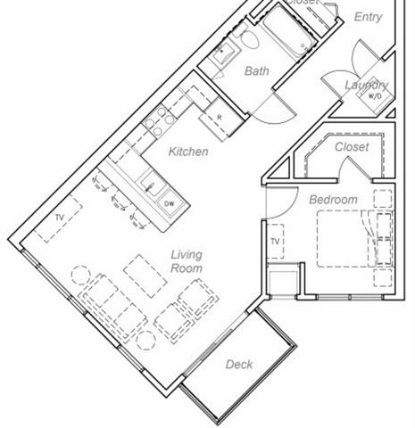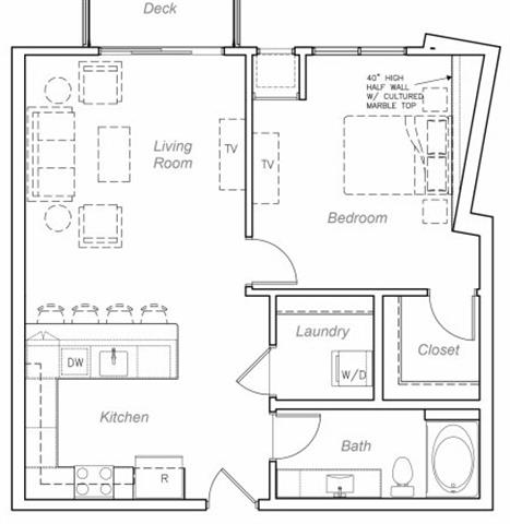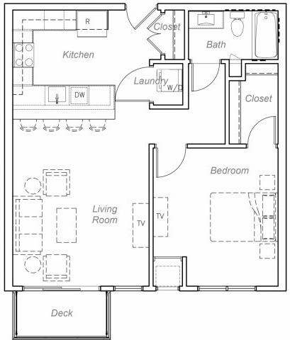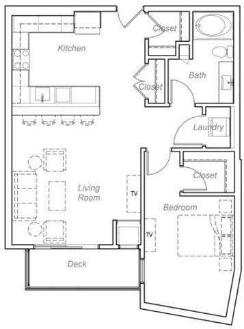 1 Dormitorio, 1 Baño, 947 pies²El más grandeEsta opción tiene las unidades más grandes para este modeloGalería del Modelo