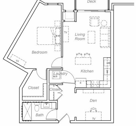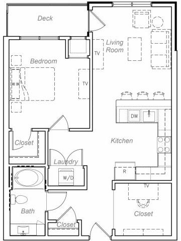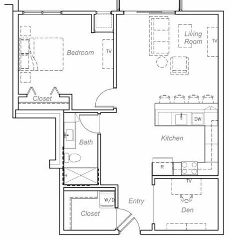 1 Dormitorio, 1 Baño, 843 pies²Galería del Modelo
