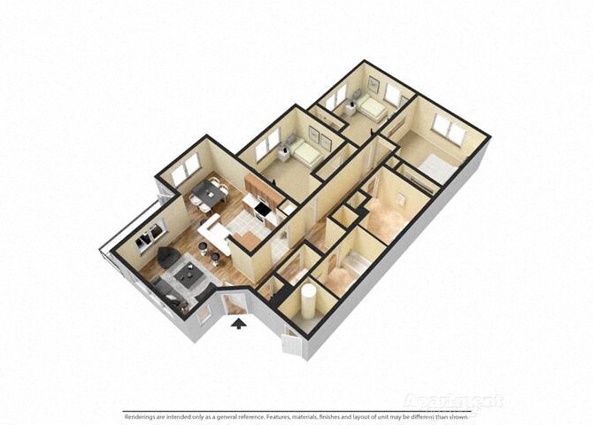 Modelo de apartamento: Three Bedroom Two Bathroom 60%$1,4993 Dormitorios, 2 Baños, 1088 sq ftDisponible Ahora![]()