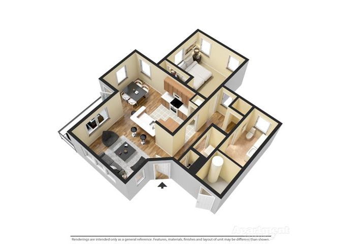Modelo de apartamento: One Bedroom1 Dormitorio, 1 Baño, 665 sq ftNo Disponible![]()