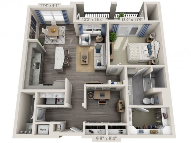 1 Dormitorio, 1 Baño, 749 pies²Disponible AhoraGalería del Modelo