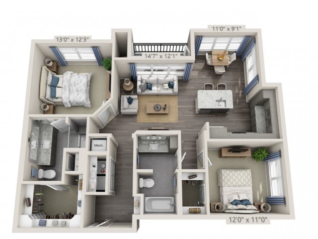 A2HC - Plano 1 Unidad de apartamento: 1119Modelo de apartamento: A2HC$1,9551 Dormitorio, 1 Baño, 834 sq ftDisponible AhoraPlano: A1B