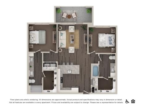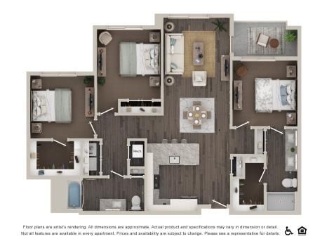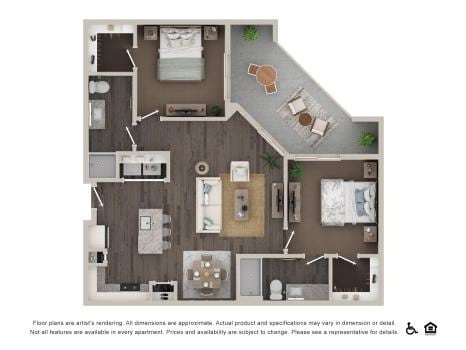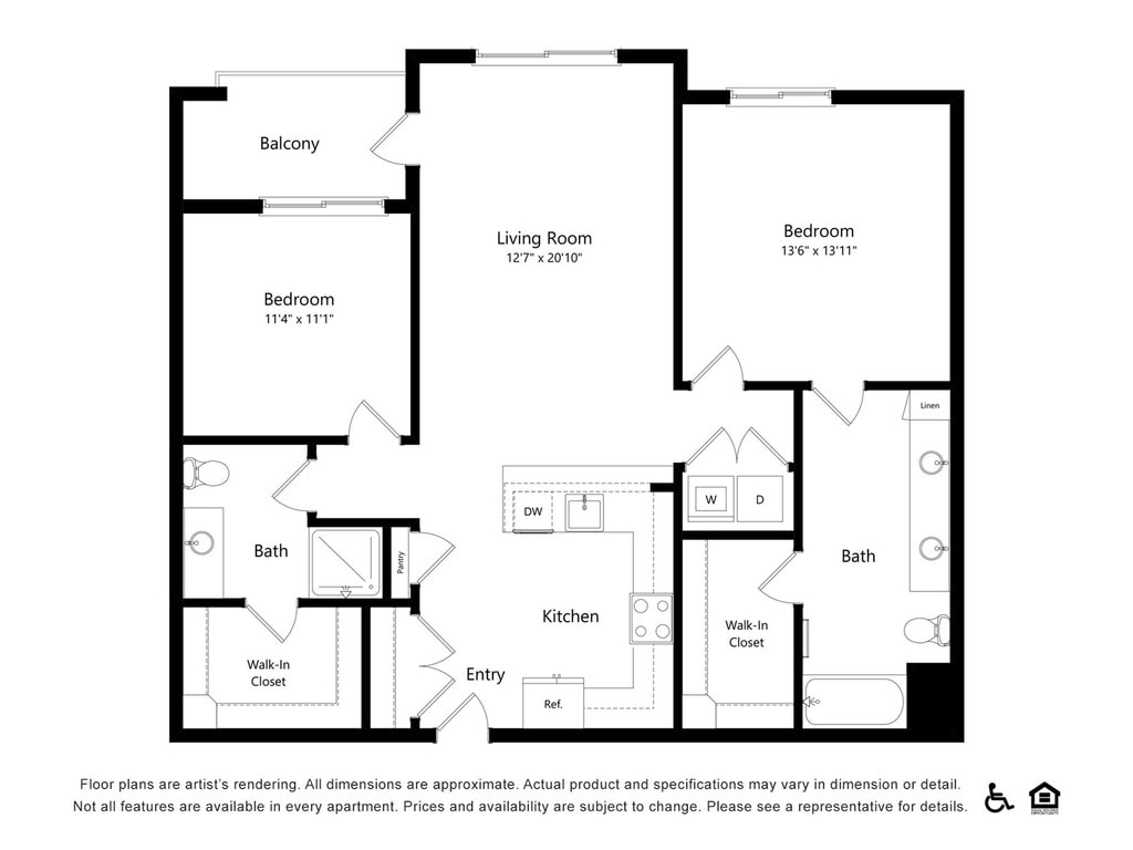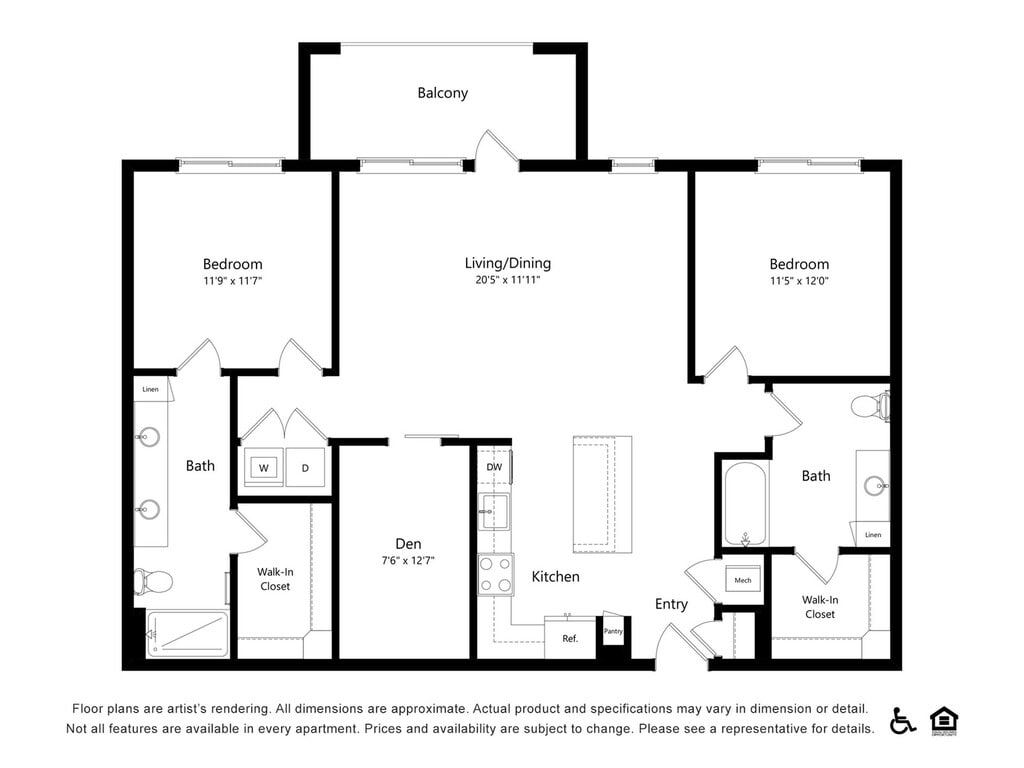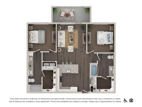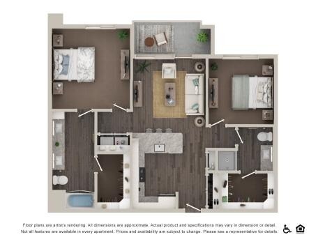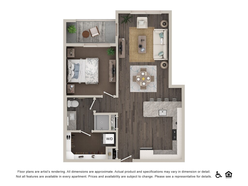A2-HC - Plano 1 Los planos de la planta son una interpretación artística. Todas las dimensiones son aproximadas. Los tamaños o el detalle del producto real y sus especificaciones pueden variar. No todas las características están disponibles en todos los hogares para rentar. Los precios y la disponibilidad están sujetos a cambios. El alquiler que se muestra es mensual. Se pueden aplicar ciertos cargos, por ejemplo, entrega de paquetes, recolección de basura, agua, servicios, etc. Depositos varian. Consulta a un representante para conocer detalles.