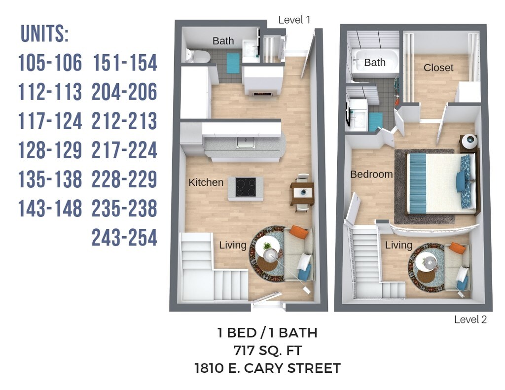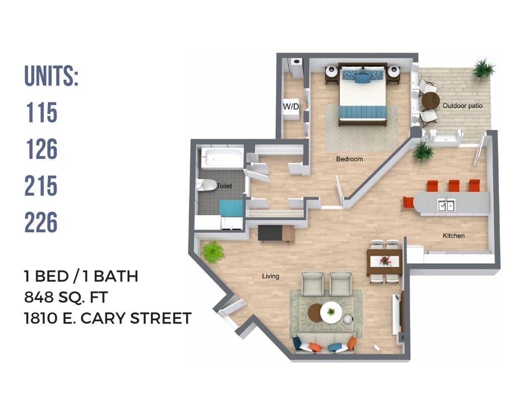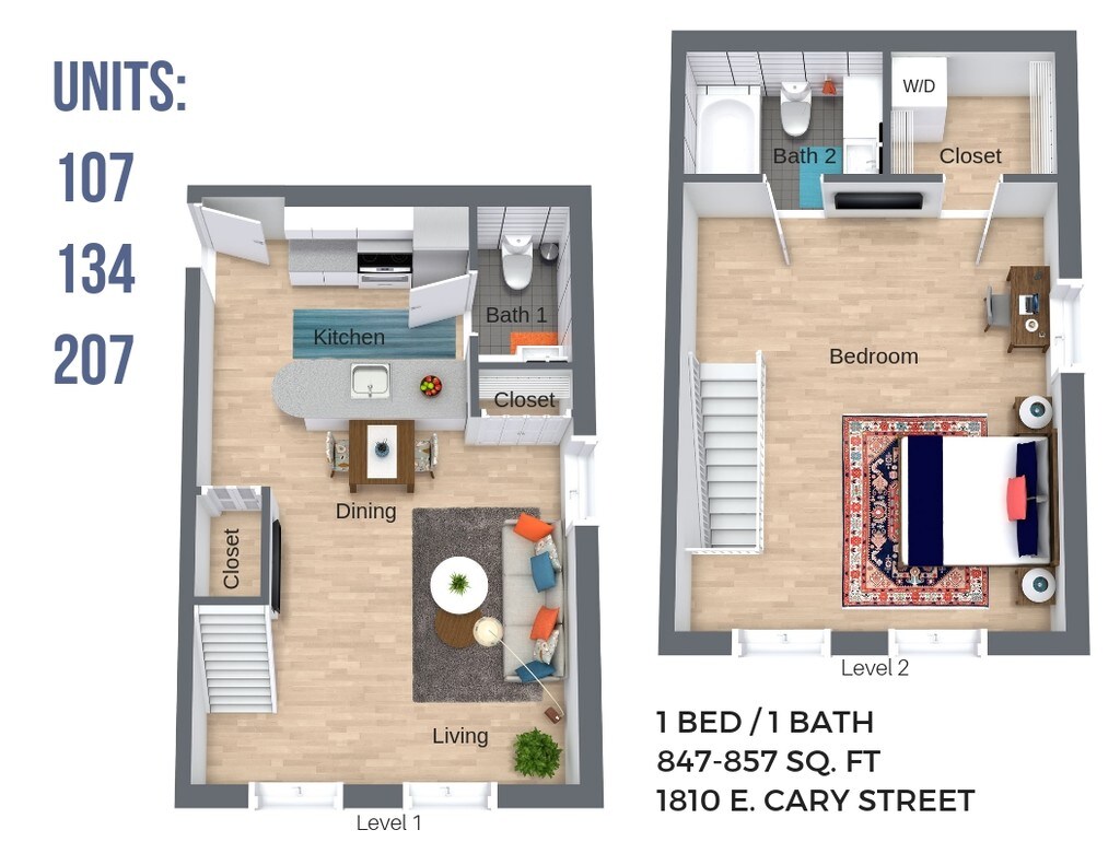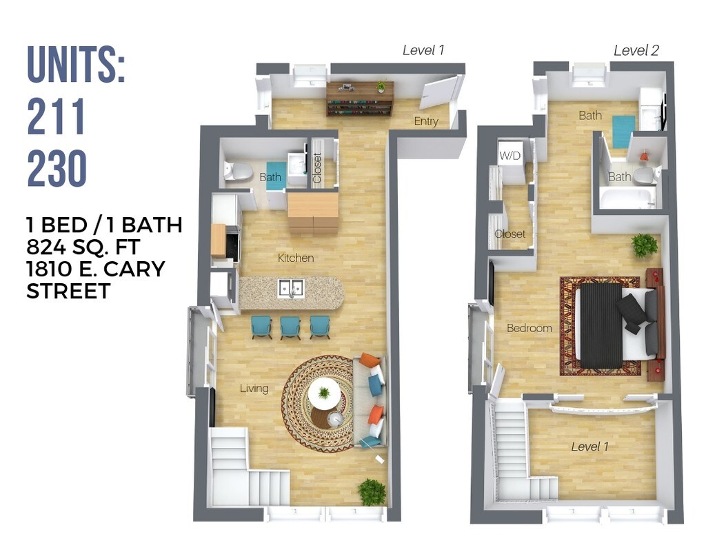 1 Dormitorio, 1 Baño, 750 pies²Disponible AhoraGalería del Modelo