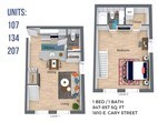 1 Dormitorio, 1 Baño, 799 pies²Disponible AhoraGalería del Modelo