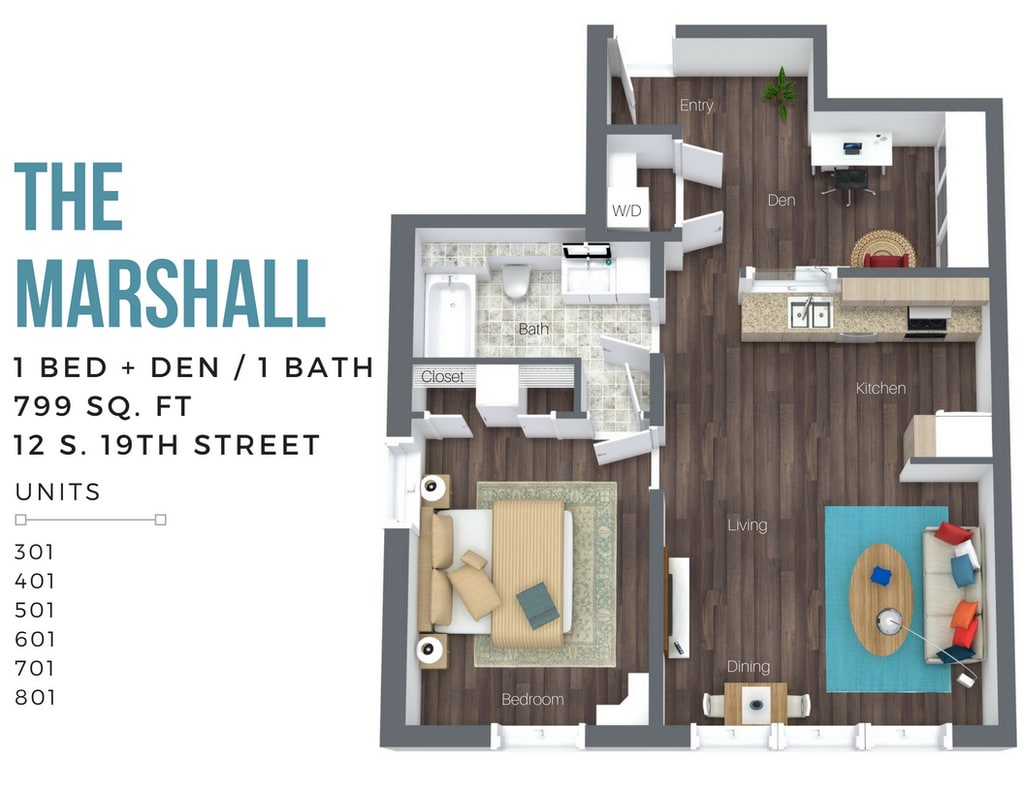 1 Dormitorio, 1 Baño, 750 pies²Precio Mensual TotalDisponible AhoraGalería del Modelo