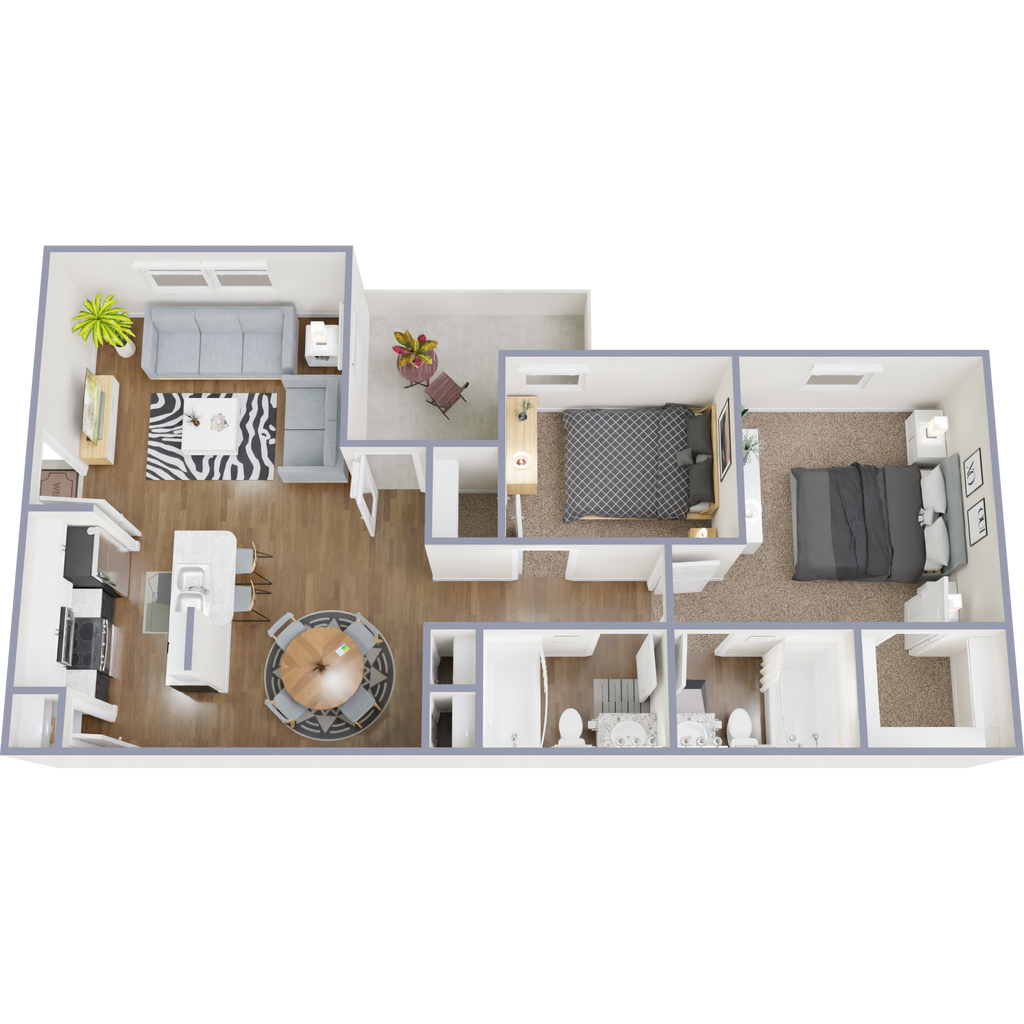 2 Dormitorios, 2 Baños, 958 pies²Disponible AhoraEl más grandeEsta opción tiene las unidades más grandes para este modeloGalería del Modelo
